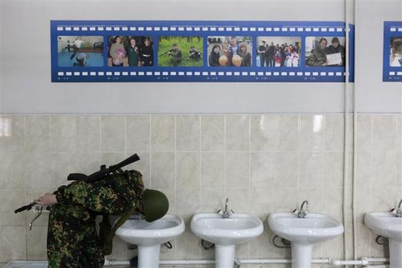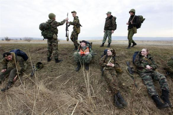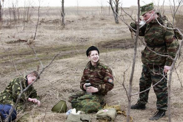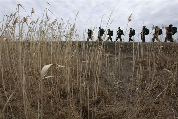 | Một sinh viên đang kiểm tra địa hạt trong đợt huấn luyện quân sự. |