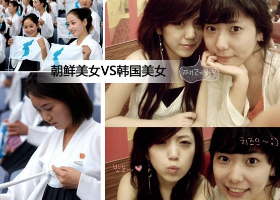 (GDVN) - Đất nước Triều Tiên vốn là một đất nước còn nhiều bì ẩn với thế giới bên ngoài, phụ nữ ở đây được cho là có vẻ đẹp tự nhiên, thuần khiết nhất mà không lạm dụng mỹ phẩm hay thẩm mỹ như những người đẹp Hàn Quốc. Để so sánh, bạn đọc có thể nhận thấy các thiếu nữ Triều Tiên ở bên mé trái tấm ảnh, còn các thiếu nữ Hàn Quốc ở bên phải.