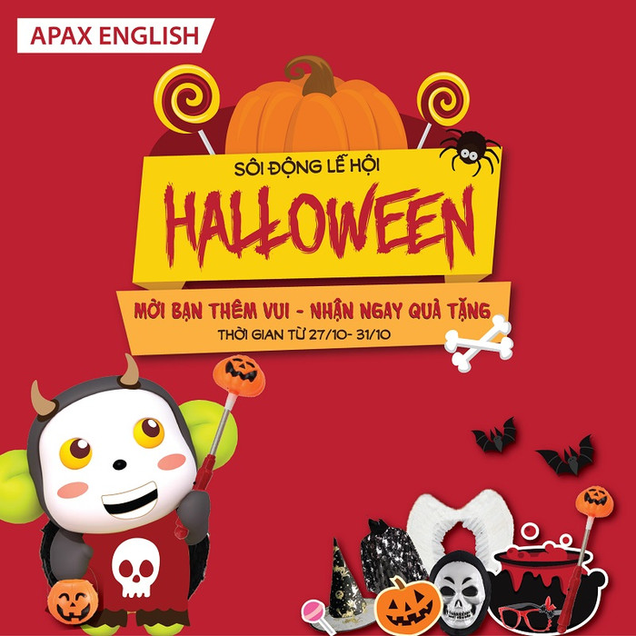 Với mong muốn các em học viên có môi trường giao lưu văn hóa, tạo sân chơi thú vị, bổ ích cho các em vào dịp cuối tuần, hệ thống trung tâm tiếng Anh trẻ em Apax English tổ chức Lễ hội Halloween "Mời bạn thêm vui – Nhận ngay quà tặng”