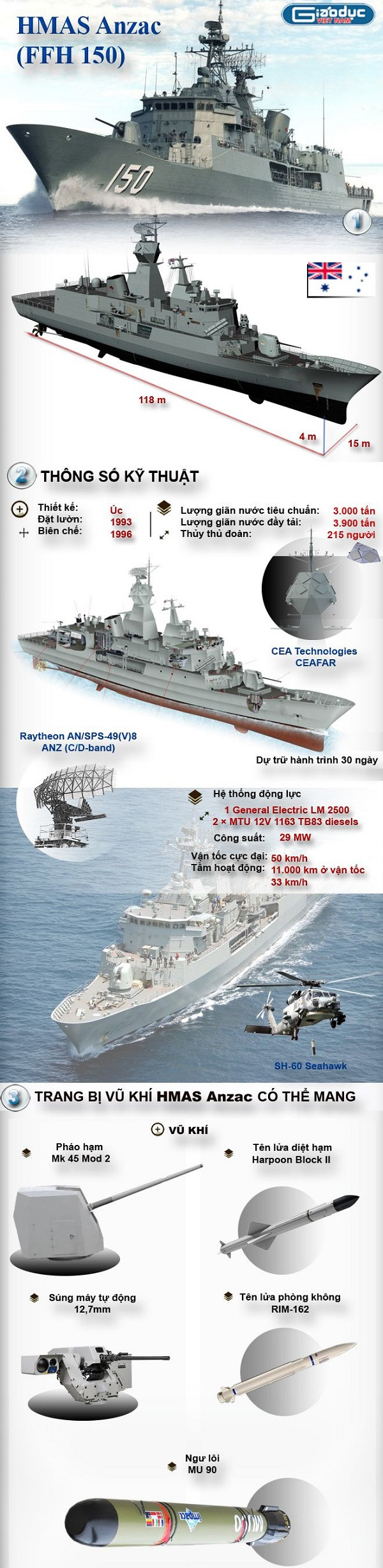Cùng xem thông tin về khu trục hạm hiện đại của Úc qua infographic dưới đây: