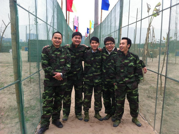| Sau khi xuất hiện tại TP HCM, Nha Trang vài năm trước đây, trò chơi đánh trận giả bằng súng sơn có mặt tại CLB Paintball Hà Nội sáng 23/2. Súng làm bằng nhựa, nặng 1,5-2 kg có bình chứa CO2 phía sau báng để tạo lực nén bắn đạn. |
