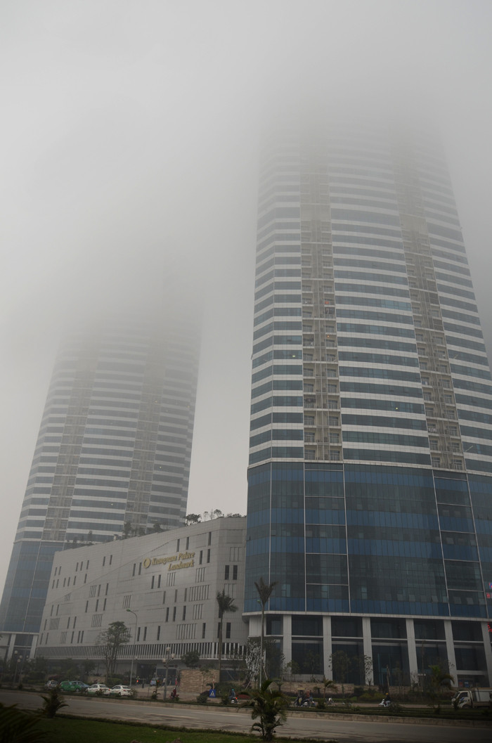 Ảnh 2: Tòa nhà KeangNam nhìn từ phía đường đối diện gần như biến mất trong màn sương mới về.