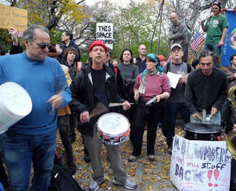 4. Hôm nay (21/11), một nhóm người biểu tình thuộc phong trào "Chiếm phố Wall" đã kéo đến bên ngoài dinh thự của ông Michael Bloomberg Thị trưởng New York và đánh trống ầm ĩ để phán đối việc cảnh sát dọn dẹp công viên Zuccotti. Cảnh sát đã phong tỏa khu vực quanh nhà thị trưởng Bloomberg, vì thế những người biểu tình đã tập trung gần Công viên Trung tâm, rồi đánh trống, thậm chí cả xô chậu và xoong nồi.(Vnexpress/AFP)