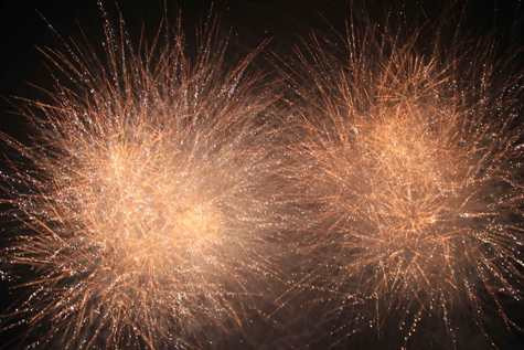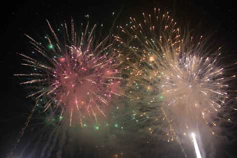| Màn bắn pháo hoa rực rỡ trong tiếng hò reo của hàng ngàn người dân |