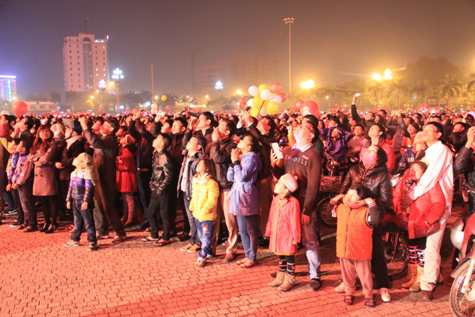 | Hàng ngàn người đã có mặt tại quảng trường Lam Sơn để thưởng thức màn bắn pháo hoa rực rỡ |