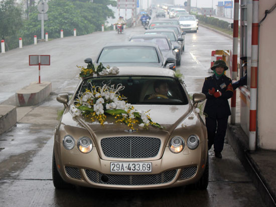 | Ngày 18/12, tại Hà Tĩnh, một tài xế đón dâu bằng dàn siêu xe nổi tiếng như Bentley Coupe Continental GT, Bentley Continental Flying Spur, Porsche Panamera 4S, Bentley Mulsanne, Audi A8, Audi Q7, Audi Q5, Meccydec S550, Meccydec C300… Đám rước dâu này được đánh giá có đoàn xe dâu khủng nhất từ trước tới nay tại Xứ Nghệ. |