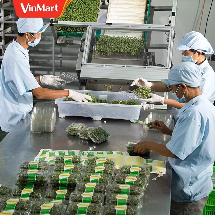 | Sản phẩm rau mầm VinEco tươi ngon trên kệ hàng của siêu thị VinMart. |
