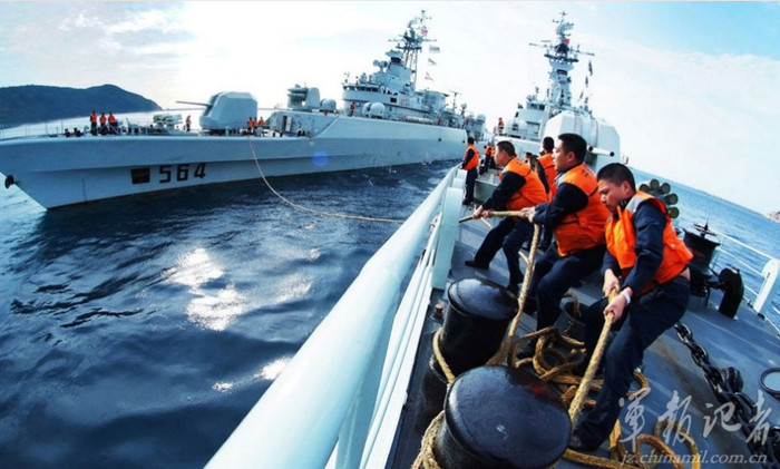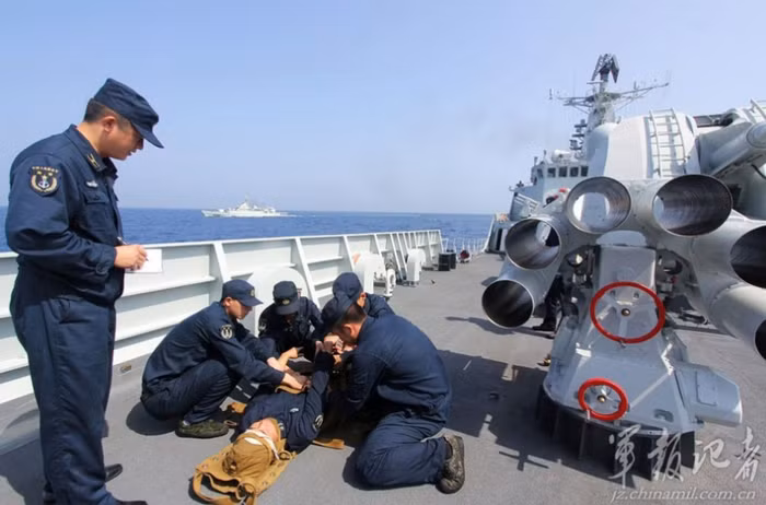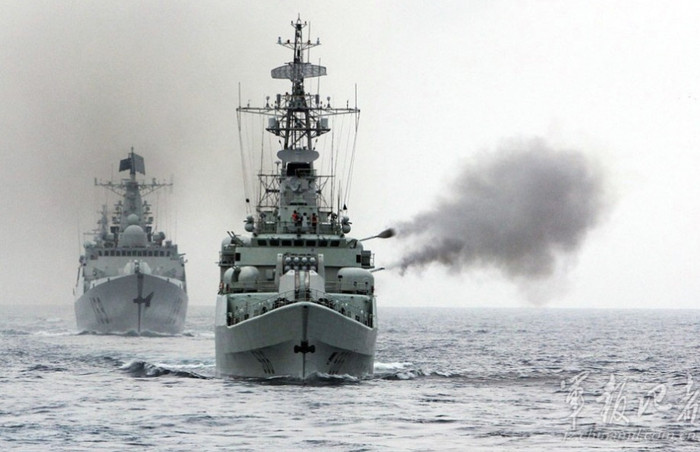 (GDVN) - Trung tuần tháng 3, Hạm đội Nam Hải, Hải quân Trung Quốc đã tiến hành một cuộc tập trận, theo kịch diễn tập, sau khi hạm đội tàu chiến Hải Quân Hải Nam cử đội tàu chiến ra biển, khi vừa rời cảng đã gặp ngay phải “tàu địch”, tàu chiến chỉ huy nhanh chóng rung còi báo động, cả hạm đội lập tức hình thành đội hình tấn công, thực hành khai hỏa nhằm vào các mục tiêu của đối phương. Dưới đây là một số hình ảnh.