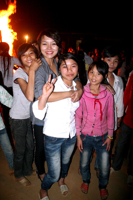 Tối 23/10, sân trường Phổ thông Dân tộc bán trú Trung học cơ sở Nậm Mười đông nghịt học sinh, nhân dân quanh vùng đến tham gia đêm lửa trại giao lưu giữa đoàn công tác Báo Giáo dục VN và nhà trường. Từ lâu lắm rồi, học sinh nơi đây không có một lửa trại giao lưu vui vẻ, hào hứng với các vị khách từ dưới xuôi lên. Đặc biệt hơn cả, đêm lửa trại còn có sự tham dự của ca sỹ Thái Thùy Linh – người mà nhiều thầy cô bảo, nhìn mãi trên tivi giờ mới được gặp.