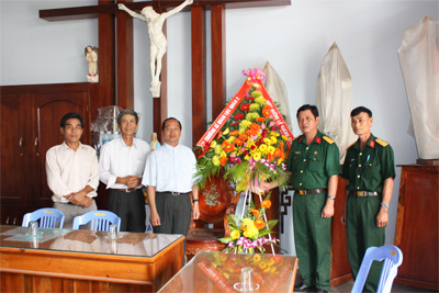 Trong dịp này, đại diện lãnh đạo Nhà trường đã trao tặng 10 phần quà (trị giá trên 10 triệu đồng) cho các giáo xứ, giáo họ, các gia đình có hoàn cảnh khó khăn trong đồng bào có đạo tại địa bàn.