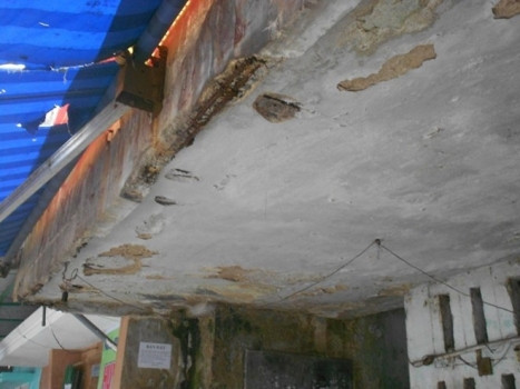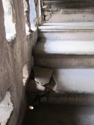 | Hệ thống bậc thang, nền, trần đều đã bị bong tróc, xuống cấp cực kỳ nghiêm trọng |