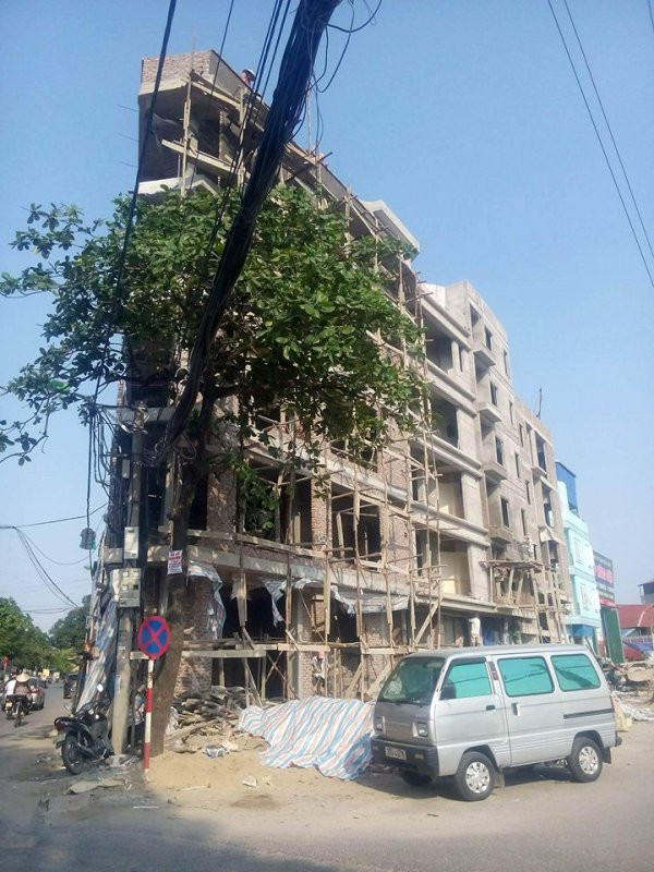 Trong lúc thi công bạt che chắn không được đảm bảo, chưa kể đến việc xây vượt tầng, vi phạm thiết kế ban đầu. Người dân địa phương đang rất hoài nghi có sự bảo kê để các công trình trên vi phạm.