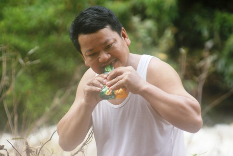 Phút nghỉ ngơi chỉ có mì tôm khô với nước nguội. Ảnh: Xuân Quang.