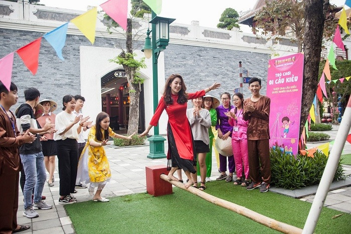 Không khí nồng ấm và gần gũi của Tết xưa còn được du khách tìm thấy ở ngay trong những trò chơi dân gian vui nhộn như đi cầu kiều, bịt mắt bắt heo…