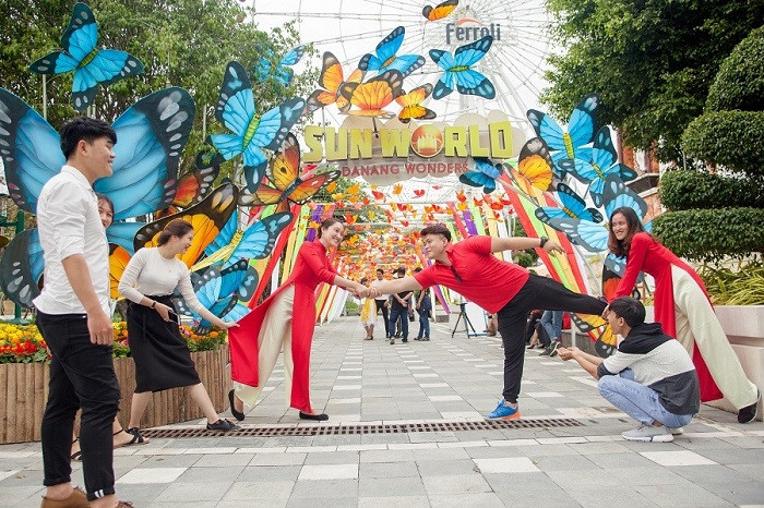 Hàng trăm cánh bướm tung bay trong gió như đem cả mùa xuân căng tràn sức sống về cho Sun World Danang Wonders, khiến du khách nào đặt chân đến cũng phải dừng lại thật lâu để ngắm nghía và tạo dáng.