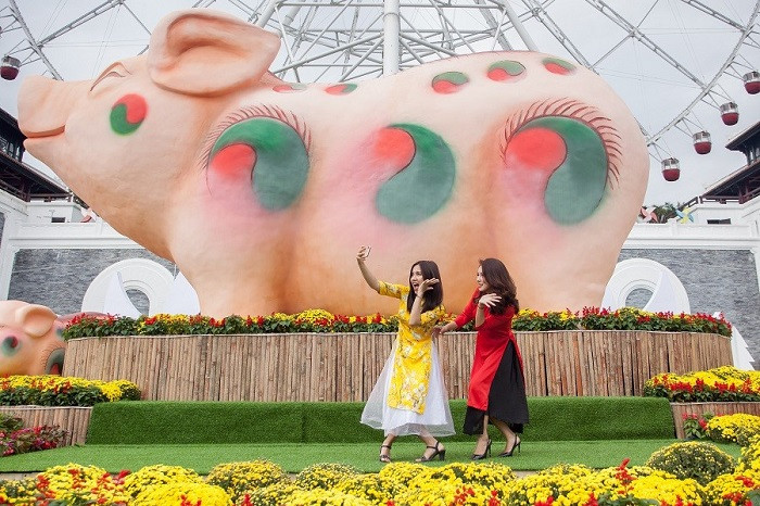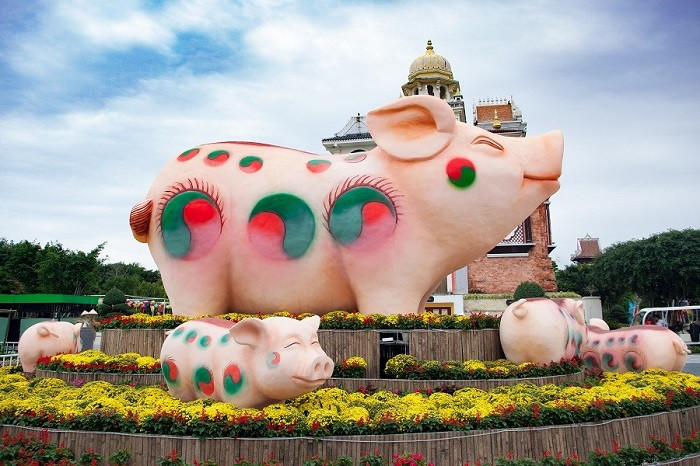 Nhưng đó chưa phải là điểm check in “độc nhất vô nhị” ở Công viên nổi tiếng này, đàn heo ngộ nghĩnh - linh vật của Tết 2019 với heo mẹ khổng lồ có chiều dài tới 8m, chiều cao hơn 4 mét này mới là điểm không thể bỏ qua khi tới Sun World Danang Wonders Tết Kỷ Hợi này.