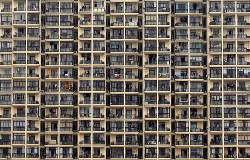 Mặt tiền của một chung cư ở Thượng Hải, một trong những đô thị phát triển nhất Trung Quốc. Thượng Hải hiện có khoảng 23 triệu người