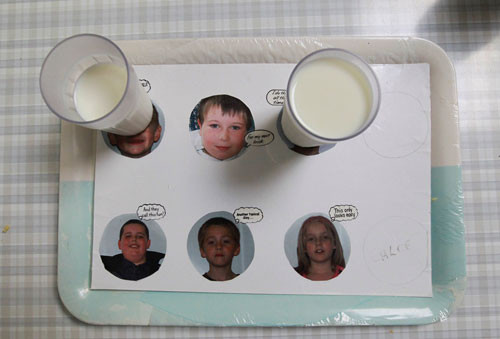 Hai ly sữa được đặt trên chiếc khay có ảnh của tất cả 7 học sinh trong ngôi trường duy nhất ở đảo Out Skerries, cũng là ngôi trường nhỏ nhất ở Vương Quốc Anh