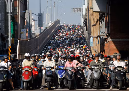 Thành phố Đài Bắc (Đài Loan) nổi tiếng với món “đặc sản” tắc đường. Mặc dù tỷ lệ người tham gia giao thông lựa chọn phương tiện là xe máy, xe tay ga cao hơn rất nhiều so với ôtô, tuy nhiên tình trạng tắc đường tại đây vẫn không hề được cải thiện.