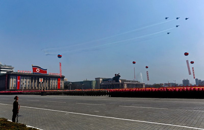 (GDVN) - Sáng ngày 15/4, CHDCND Triều Tiên đã tổ chức một lễ diễu binh quy mô tại quảng trường Kim Nhật Thành ở thủ đô Bình Nhưỡng. Đây là một trong các hoạt động lớn được quốc gia này tổ chức những ngày qua để chào mừng lễ kỷ niệm 100 năm ngày sinh nhà sáng lập đất nước, cố lãnh tụ Kim Nhật Thành và Đại tướng Kim Jong-un chính thức trở thành nhà lãnh đạo tối cao của đất nước.