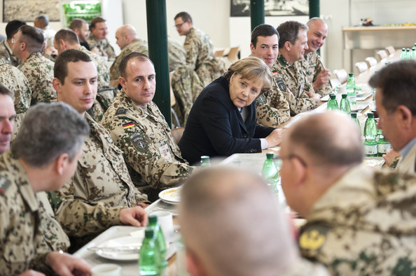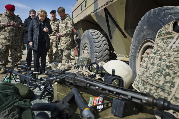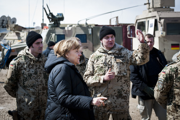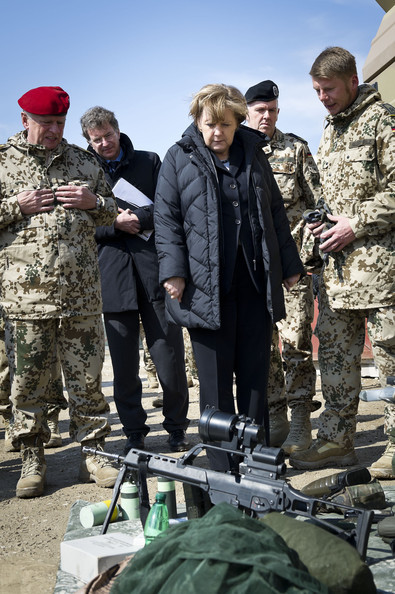 | Ngoài ra, Thủ tướng Angela Merkel còn trao đổi với binh lính về trang thiết bị quân sự. |
