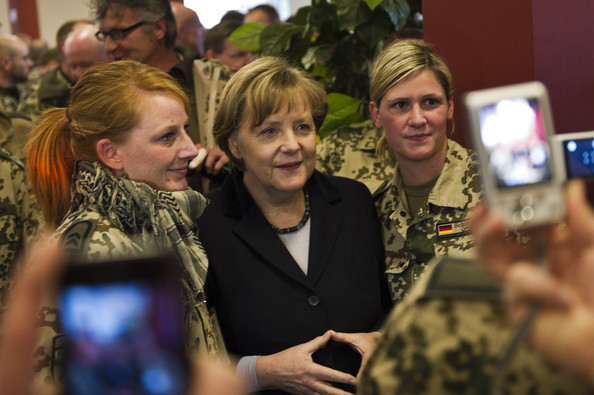 | Các binh sĩ rất hào hứng khi được chụp ảnh lưu niệm cùng Thủ tướng Đức. |