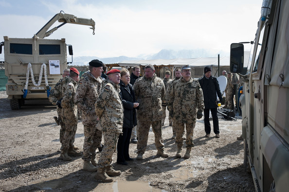 | Trong chuyến thăm, bà đã có cuộc nói chuyện với toàn thể các binh sĩ Đức đang đóng quân tại Mazar-i-Sharif, Afghanistan. |