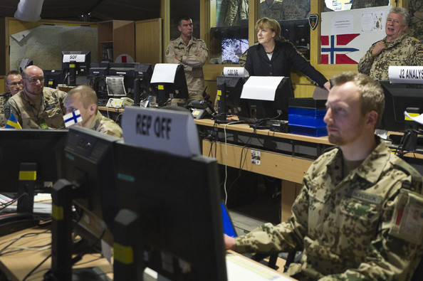 | Bà Angela Merkel đang thăm các binh sĩ Đức tại Trung tâm chỉ huy hoạt động chung (CJOC). |