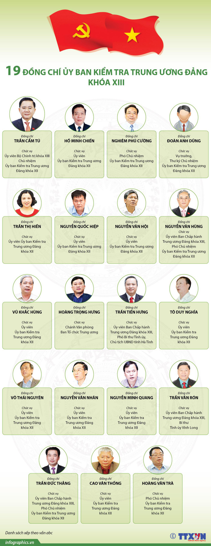 Ban Chấp hành Trung ương Đảng khóa XIII đã bầu Ủy ban Kiểm tra Trung ương khóa XIII, gồm 19 đồng chí: