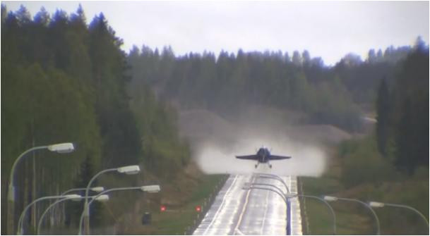 Đoạn video dưới đây ghi lại cảnh một chiếc tiêm kích F-18 của Không quân Phần Lan huấn luyện cất cánh từ đường cao tốc số 5 ở Joroinen.
