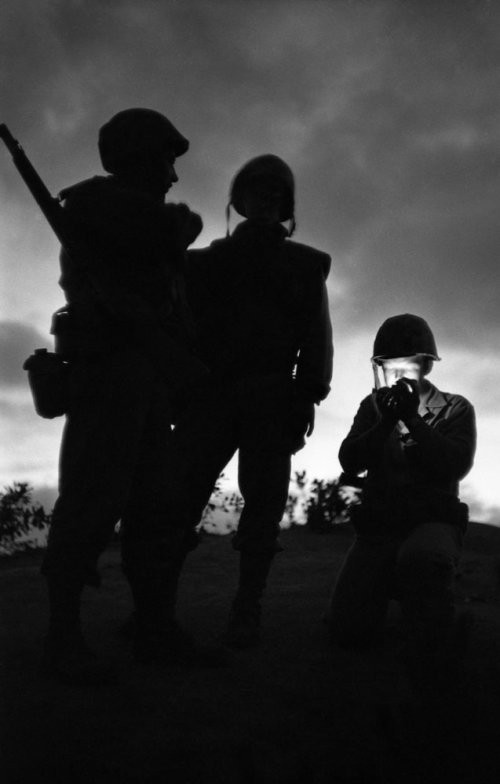 | Lính Mỹ đi qua một hẻm núi được gọi là "Nightmare Alley" năm 1950. |