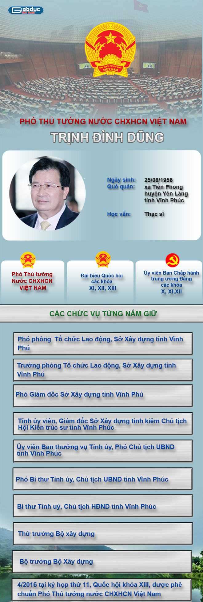Tiểu sử bằng hình ảnh của Phó Thủ tướng Trịnh Đình Dũng