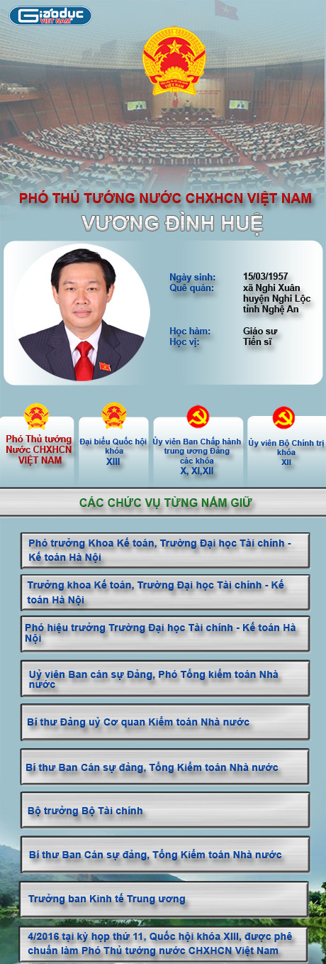 (GDVN) - Ngày 9/4, Quốc hội đã phê chuẩn ông Vương Đình Huệ giữ chức Phó Thủ tướng theo tờ trình của Thủ tướng Nguyễn Xuân Phúc.