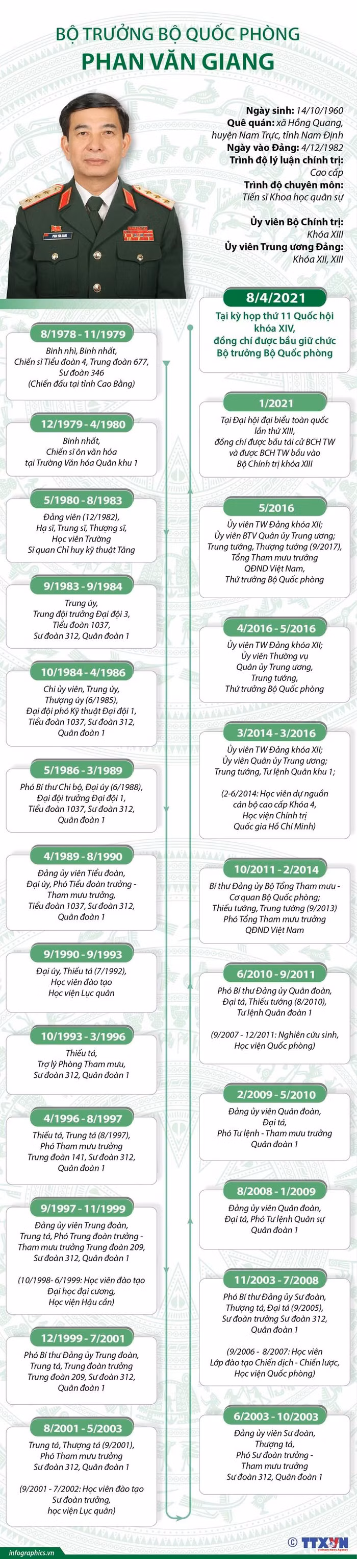 GDVN- Ngày 8/4, tại Kỳ họp thứ 11 Quốc hội khóa XIV phê chuẩn, bổ nhiệm Thượng tướng Phan Văn Giang giữ chức Bộ trưởng Bộ Quốc phòng.