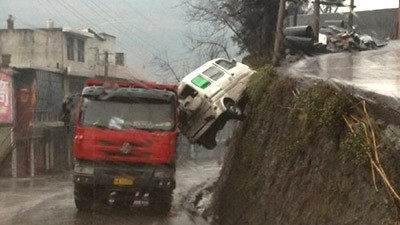 9. Hôm nay, một tài xế Trung Quốc thoát chết thần kỳ sau khi chiếc xe buýt do anh này điều khiển bất ngờ mất lái, lao xuống một con đường cạnh sườn núi, và may mắn được xe tải đi ngang qua… “ẵm” gọn. Các nhân chứng cho hay, họ thực sự sững sờ khi chứng kiến cảnh tượng chiếc xe buýt bị treo lơ lửng, kẹp giữa xe tải và sườn núi. Cũng nhờ vậy, tài xế Yu Lin mới được bình an vô sự.(Dân Việt)
