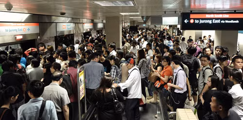 8. Hôm qua (15/12), hàng ngàn hành khách đã bị kẹt lại nhà ga vì sự cố mất điện đường ray làm toàn tuyến tàu điện ngầm Bắc Nam Singapore ngừng hoạt động. Tàu điện tê liệt cũng làm cho các trạm chờ xe buýt và taxi “quá tải” người. Theo thống kê của cảnh sát đã có khoảng 127.000 người mắc kẹt tại các ga và trên các đường tàu điện ngầm khi sự cố xảy ra.(Thanh niên/AFP)