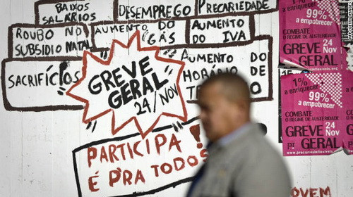 6. Ngày 24/11, tất cả các chuyến bay đến và rời Bồ Đào Nha đã bị hủy, sau khi một cuộc tổng đình công nhằm phản đối các biện pháp khắc khổ đã nổ ra, gây tê liệt mạng lưới giao thông nước này. Theo CNN, cuộc tổng đình công là kết quả của lời kêu gọi từ hai công đoàn lớn nhất Bồ Đào Nha giữa lúc dư luận đang hết sức bất mãn về các biện pháp khắc khổ của chính phủ.(Tuổi trẻ/CNN)
