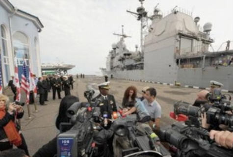 7. USS Philippine Sea, một tàu tuần dương trang bị tên lửa dẫn đường của Mỹ đã tới thành phố cảng Batumi bên bờ Biển Đen của Gruzia để tham gia cuộc tập trận chung với Lực lượng Bảo vệ Bờ biển nước này. Mục đích là nhằm thiết lập các mối quan hệ đối tác hàng hải toàn cầu với các quốc gia bên bờ Biển Đen, cải thiện an ninh hàng hải. Trước đây, cảng Batumi từng ba lần tiếp đón các tàu chiến mang tên lửa của Mỹ vào năm 2008, 2010 và hồi đầu năm nay. (AFP)