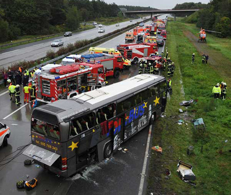 1. Trong 2 ngày qua, nước Đức liên tiếp xảy ra hai vụ tai nạn giao thông nghiêm trọng làm hơn 40 người bị thương. Nghiêm trọng nhất là vụ tai nạn liên hoàn giữa 52 phương tiện giao thông trên xa lộ gần thành phố Muenster, phía tây nước Đức làm 3 người thiệt mạng và 35 người bị thương. Điều tra ban đầu cho thấy, sương mù dày đặc đã gây ảnh hưởng tầm nhìn là nguyên nhân dẫn đến vụ tai nạn. Vụ tai nạn thứ hai xảy ra sáng sớm 19/11 tại thành phố Aachen. Hai ô tô đi ngược chiều đã đâm vào nhau làm 5 người thiệt mạng và 2 người bị thương.(VOV/Reuters)