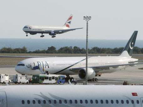 4. Hai máy bay của hãng hàng không Pakistan Pakistan International Airlines (PIA) hôm qua đã nhận được những lời đe dọa đánh bom và phải hạ cánh khẩn cấp tại Thổ Nhĩ Kỳ và Malaysia. Phía Pakistan không tiết lộ chi tiết về việc PIA nhận được lời đe dọa bằng cách nào. (AP)