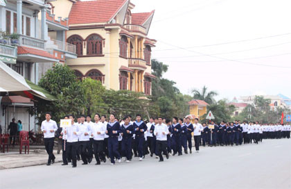 Các khối đều được bố trí biển mang tên đơn vị mình, chỉ huy các khối duy trì đội hình chạy với quãng đường là 2 km, vừa chạy vừa hô vang khẩu hiệu truyền thống, biểu thị sức mạnh của cán bộ, chiến sĩ trong rèn luyện thể lực, xây dựng và bảo vệ Tổ quốc.