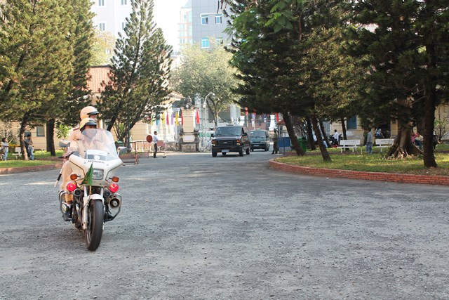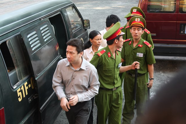 | 8h30 cảnh sát dẫn giải bị cáo Huyền Như và các đồng phạm đến TAND TP.HCM |