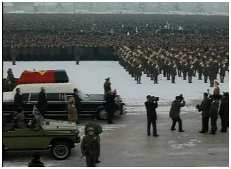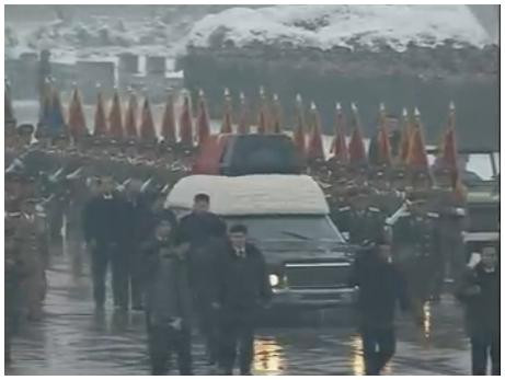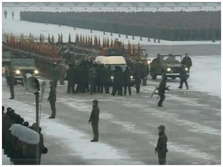 (GDVN) - Linh cữu của Chủ tịch Kim được đặt trong chiếc xe tang chuyển từ lăng Kumsusan tới đài tưởng niệm ở quảng trường phía trước. Dưới đây là loạt ảnh chụp theo diễn biến buổi phát song trực tiếp quá trình đưa lĩnh cữu ông Kim Jong Il.