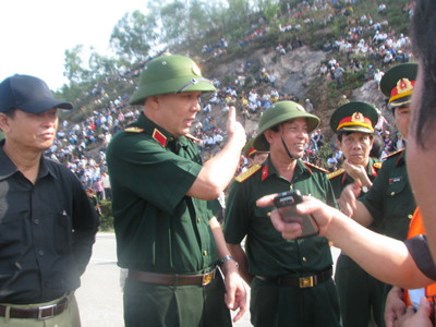 | Rất đông người ngồi trên núi trông ngóng cuộc trục vớt |