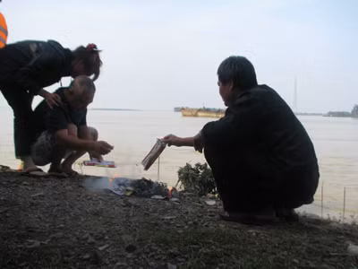 | Hàng trăm người dân tập trung bên bờ sông từ sáng sớm |