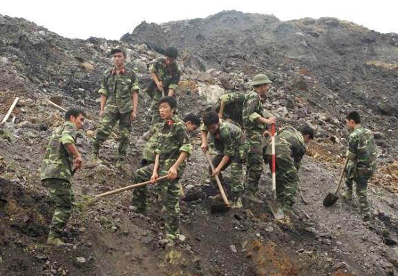 | Lực lượng cứu hộ với đủ các lực lượng, phương tiện đang ra sức tìm kiếm các nạn nhân xấu số. |