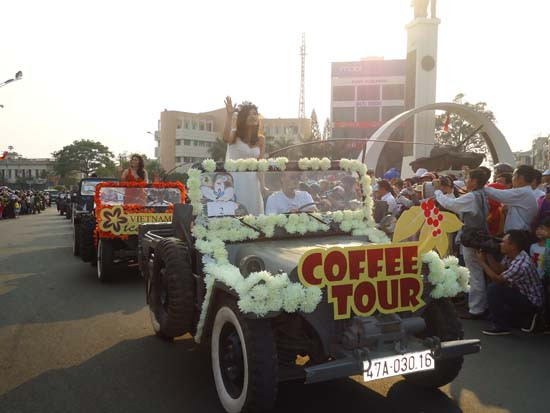 | Với chủ đề “Thế giới cà phê, cà phê thế giới”, lễ hội đường phố năm nay lấy cà phê làm chủ đề chính cùng những màn diễu hành xe hoa, múa lân, voi mang biểu tượng cà-phê, cồng chiêng, hóa trang, các vũ điệu văn hóa... biểu diễn trên các đường phố với sự tham gia gần 1.000 nghệ nhân và quần chúng... |