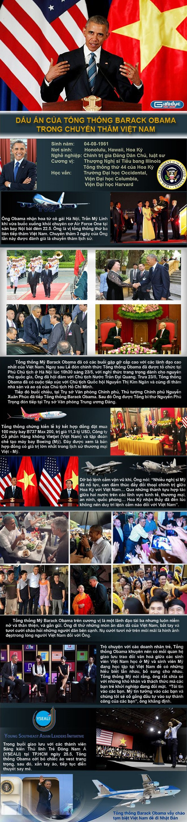 Trong chuyến thăm 3 ngày tới Việt Nam, Tổng thống Mỹ Barack Obama đã tạo nên những dấu ấn đẹp đối với người dân Việt Nam.