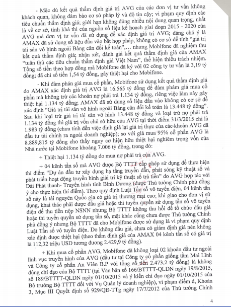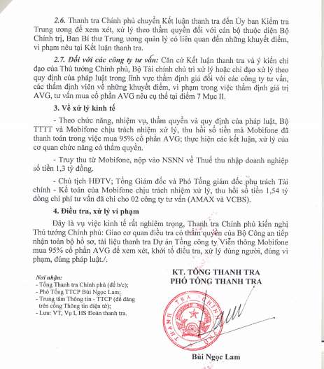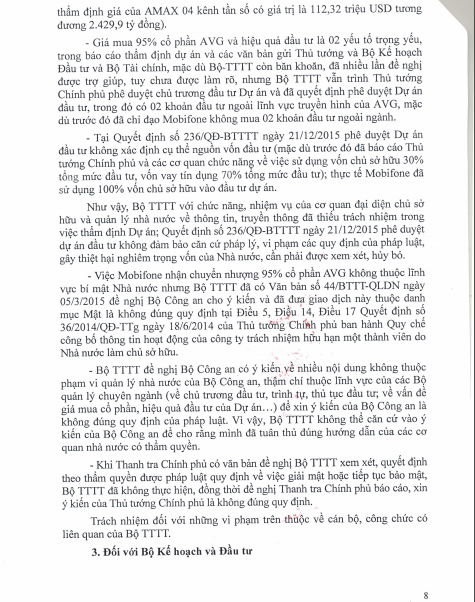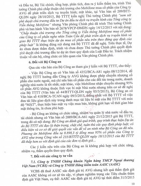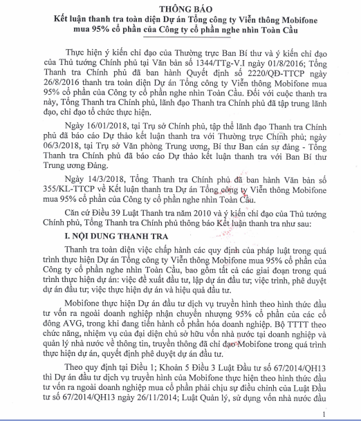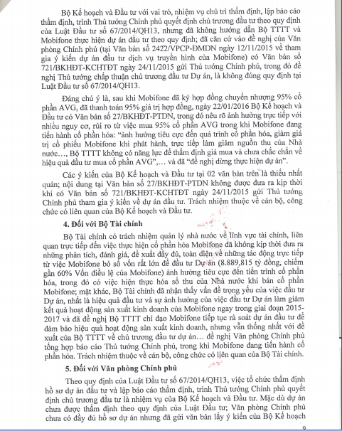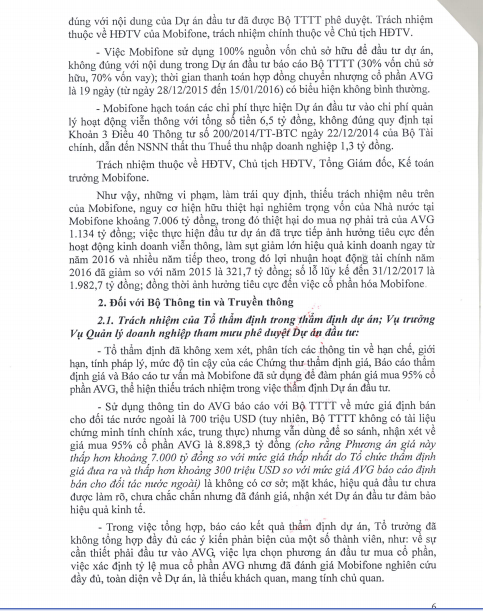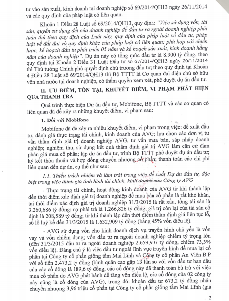 Báo Điện tử Giáo dục Việt Nam xin đăng nguyên văn các trang văn bản thuộc Kết luận số 356/TB-TTCP về việc Kết luận thanh tra toàn diện Dự án Tổng công ty Viễn thông Mobifone mua 95% cổ phần của AVG.