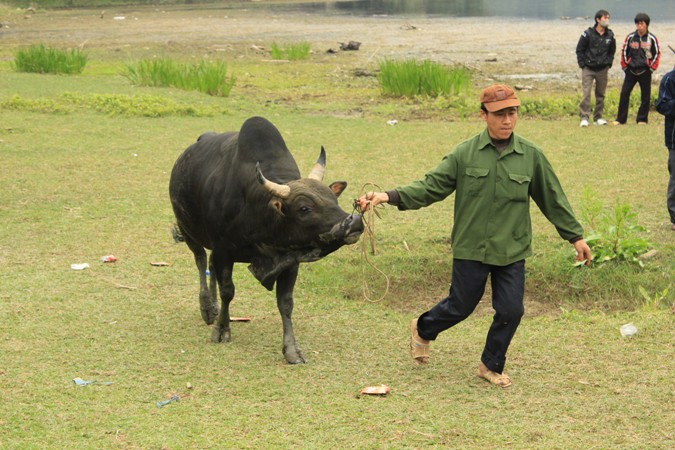 | Các chủ nhân đang đưa bò của mình ra thi đấu |